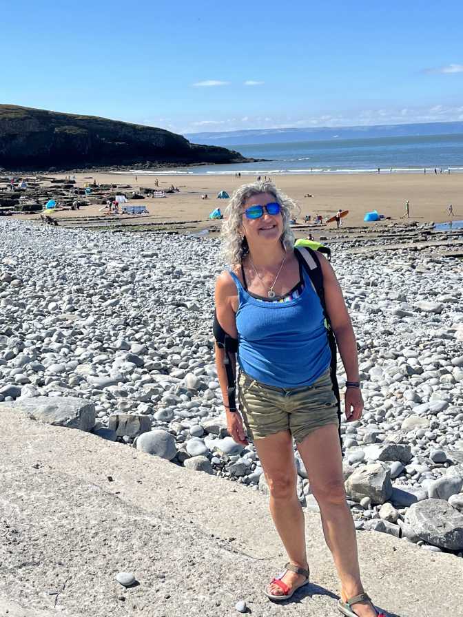 We cycled down and had a look at the beach at Ogmore by sea it was very busy. We didn’t stay there but decided to cycle back and then cycle down to the beach the other way at Southerndown. It was a little bit quieter and I got to swim. There was an extremely steep slope to get down there which made us very grateful that we have electric bikes!