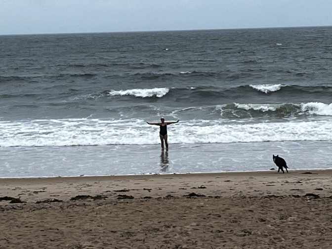 When I did go in a little later I followed some other swimmers in. They weren’t as friendly as I hoped, but they didn’t seem to mind. The sea was a little choppy so it was wave jumping rather than actual swimming.