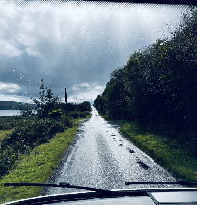 The three photos below are basically what we saw in the first hour or so. As you can see, single track roads and fairly deserted! The ferry goes into Armadale which is right at the bottom of Skye there is a castle which we didn’t actually go to but we could see from the ferry.