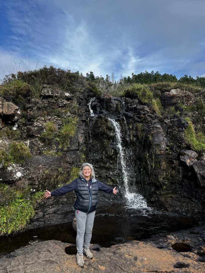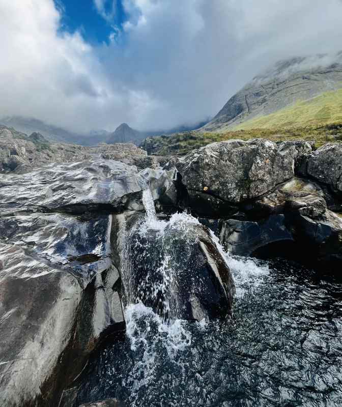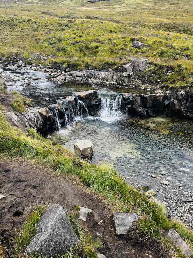 The next day we headed to Glenbrittle and The Fairy Pools. For over a year I had a link to someone’s blog saved on my phone with a photo of somebody in The Fairy Pools under a waterfall. As an outdoor swimmer I saw this photo and I wanted to go there, I wanted to be under that waterfall! The photo, I suppose was a vision board. You can imagine how excited I was to go to The Fairy Pools.