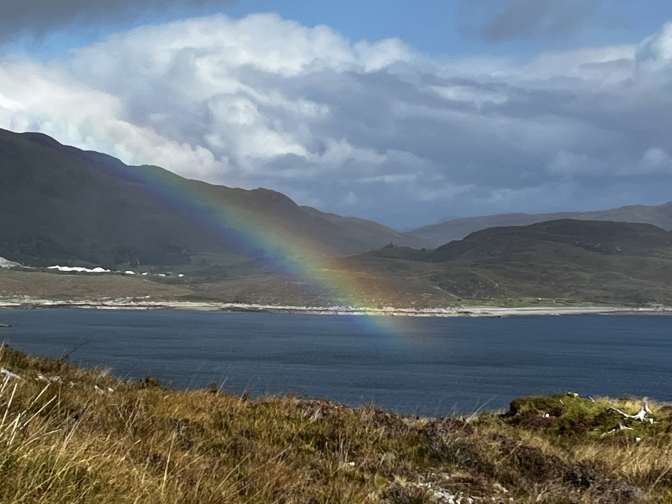 We may not have made it to Elgol but we were greeted in our first hour by the most amazing rainbow over the mountains