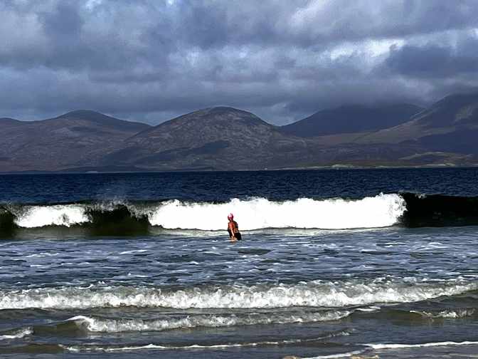 I loved everything about this beach and this swim, the vastness, the clear blue sea, the white sand that went on for miles, the backdrop of mountains! What an incredible place to see and to swim at. Here is a link to my instagram reel of me going in. I think it says it all!