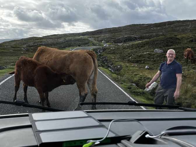 Here’s some photos of ‘The traffic’ we encountered along the way and Dee trying his best to move them along 🤣. He eventually managed with the help of the lady in the car you can see in the distance . She was a local and probably used to it!
