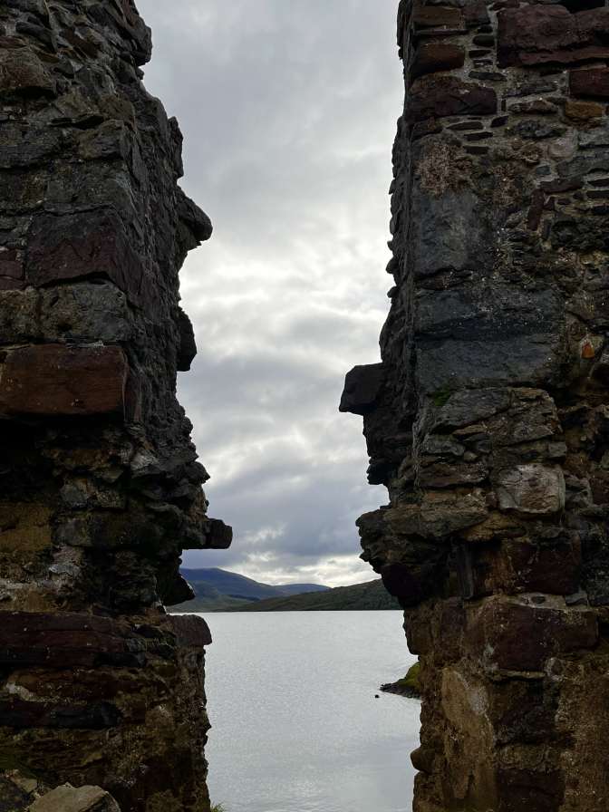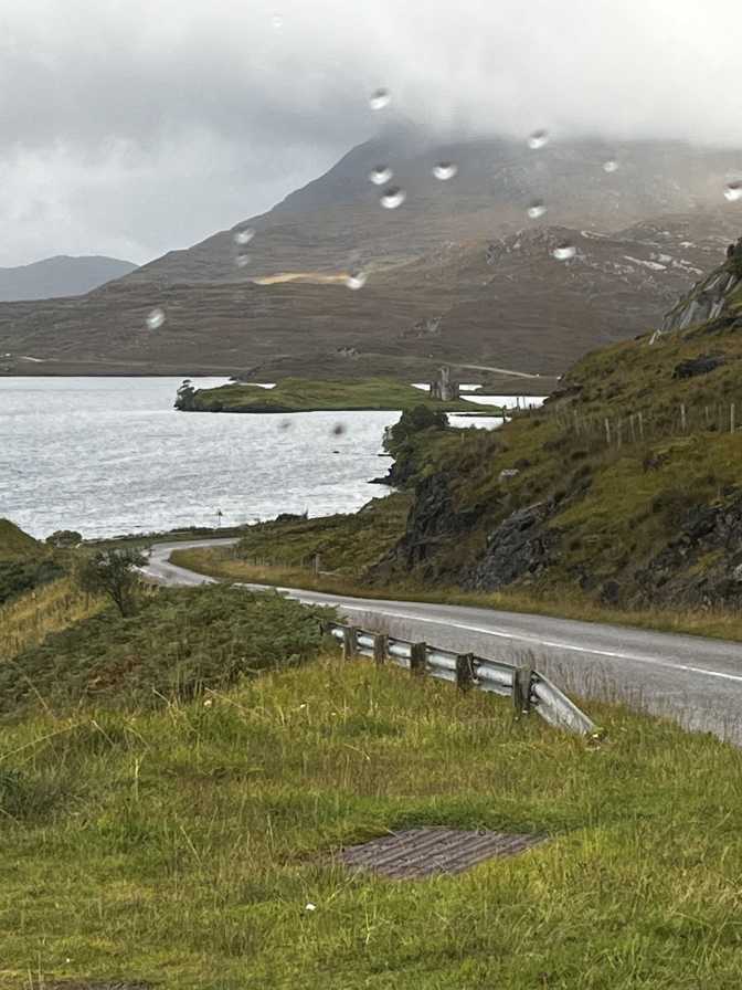 In the morning we had a quick look around Ullapool. It was a nice little town. We stopped for a quick coffee then continued on the NC500. Here we are on the road driving to Ardvreck Castle.