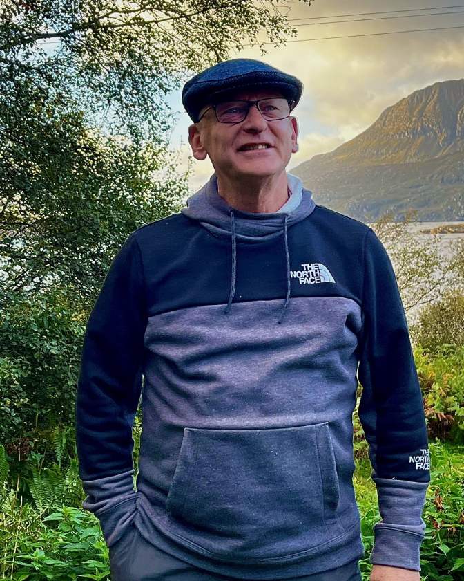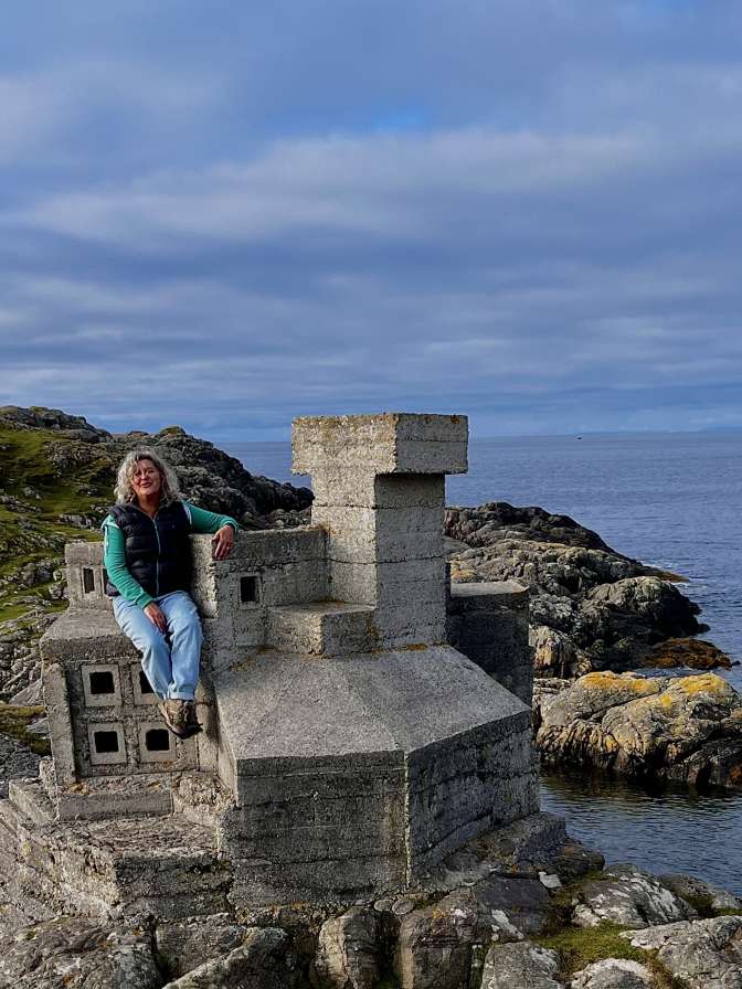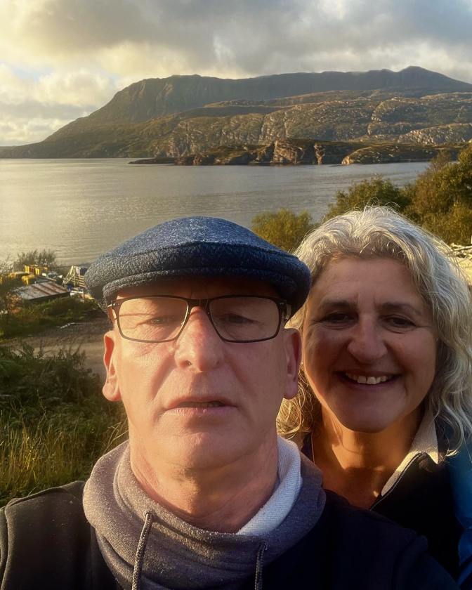 Here is Dee sporting his Harris Tweed cap that he bought on the ferry.