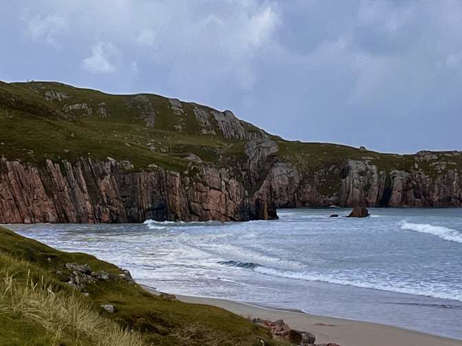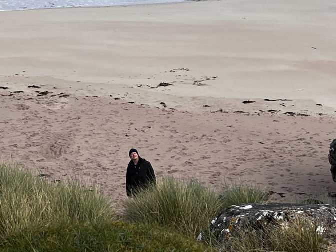 In the afternoon we arrived at Sango Sands, Durness Beach a bit further up the west side of the NC 500. It was an absolutely stunning beach and the weather was glorious, just a really beautiful sunny day. It was forecast to be stormy the next day which was kind of hard to believe as it was so nice. That in mind I was tempted to double dip but in the end I didn’t, it seemed a lot of effort at the time 😂