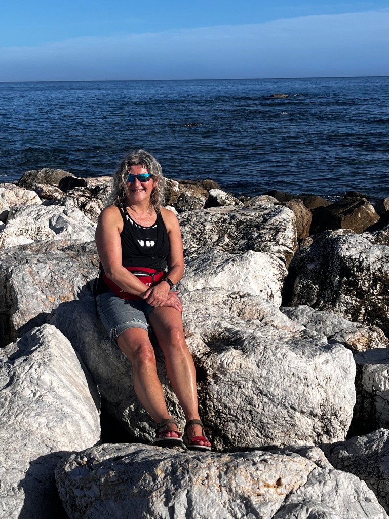We went for a bike ride along the coast and up to the main part of Fuengirola where there was a harbour. I got to sit on some rocks out at sea in the sun and have a photo!