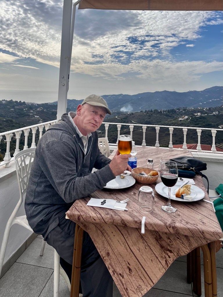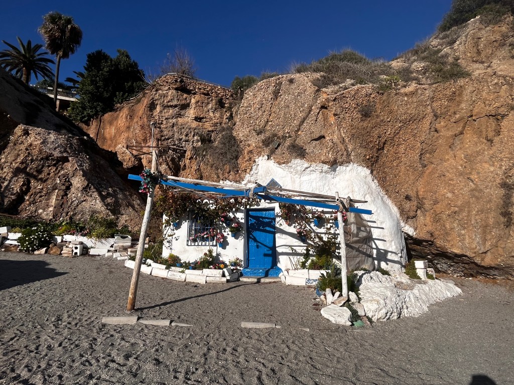 We also discovered that the most popular beach at Nerja was a short walk away. It also involved some steep uphill climbing but it was worth it. It was called Burrianna. It was a big white sandy beach and it had a few restaurants and bars. Dee was able to sit and have a beer while I went for a swim.