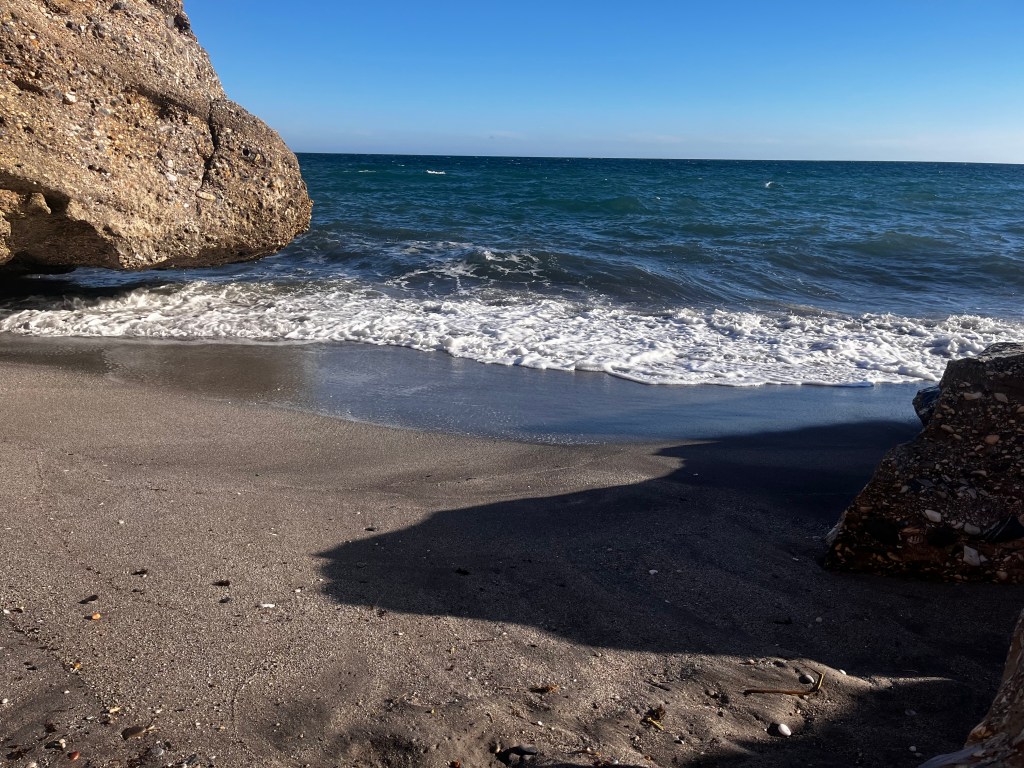 We headed to a nice park up, it was right next to the beach at a place called El Dedo. The beach we were parked by was very rocky and not really a suitable place to swim. Just a short 5 minute walk though, past a marina and then there was a lovely sandy beach that was great for swimming. Here’s the sign on the beach.