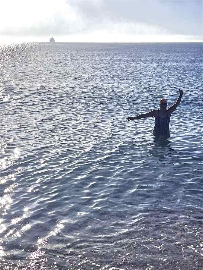 Here I am swimming to the buoy. In Brighton in the summer the buoys come out to mark the swimming areas. We always swim to them, often doing a circuit. In the winter they get removed and we’re always sad but love it when they come out again as it’s a sign of the summer.