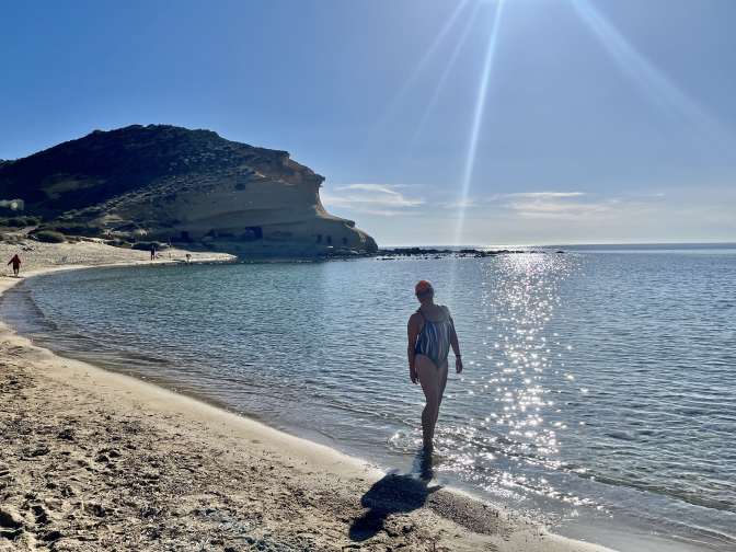 Our first stop was about half an hour away. Another recommendation we’d had, it was called Playa de los Cocedorres Cala Cerrada and we were now in Murcia