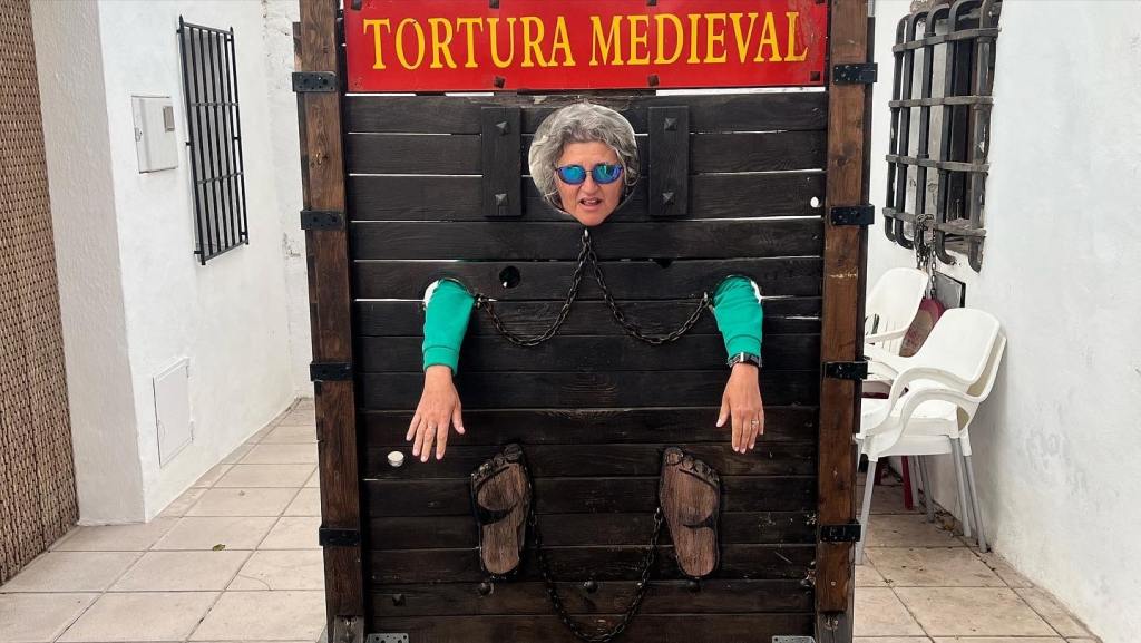 Gudalest was a pretty little village in the mountains. We had a walk around. In some ways it was similar to Frigiliana the mountain village we went to when we were in Nerja. The steep cobbled streets and houses were very similar. Here there was also a torture museum! We didn’t actually go in but got the photo from the outside!