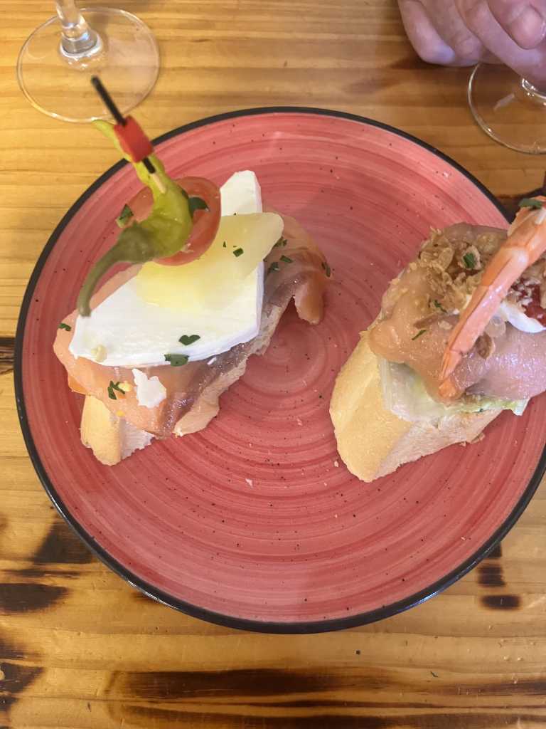 The reason for not going out before 8pm is because the Spanish eat late. We wanted some life so we stuck to the instructions! It took us a while to find Tapas Alley. We were told there is a red carpet out! It was literally a very small alley with a few tapas bars. The day we went there was no red carpet? Apparently not all of them were open as it was a public holiday. It still seemed quite buzzy tho. The tapas were nice. You could look at the tapas as shown in the photo below and you were given a list where you could match up to what you could see and tick what you wanted on the list. Once ticked you handed back and the tapas arrived quickly. It was all very fast turn around.