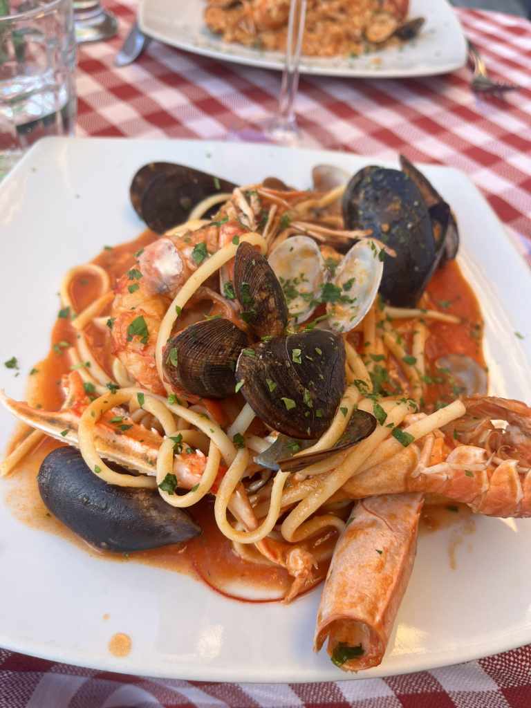 We sat outside and had some lovely food. I had seafood pasta and Dee had seafood risotto.