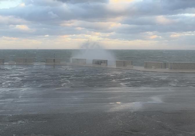 It was cold and seemed to be getting colder with a very strong wind. During the night we could hear wind and the sea. We were still very surprised to see how bad it actually was in the morning. The waves were coming right up over the defence wall and even hitting our van!!