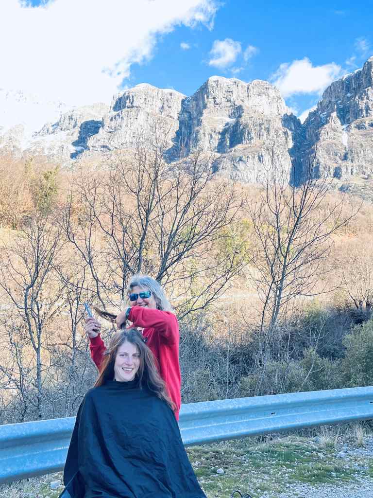 Once we got back to the van I cut Dorina’s hair. We did it outside and my ‘new salon’ had a great view .