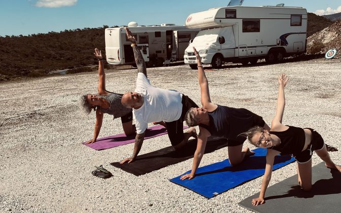 During the various lock downs I practiced hot yoga at home with an infra red heater. It wasn’t quite the same though! The Harris’s were also big fans of hot yoga but obviously getting to hot yoga studios isn’t really an option whilst on the road!