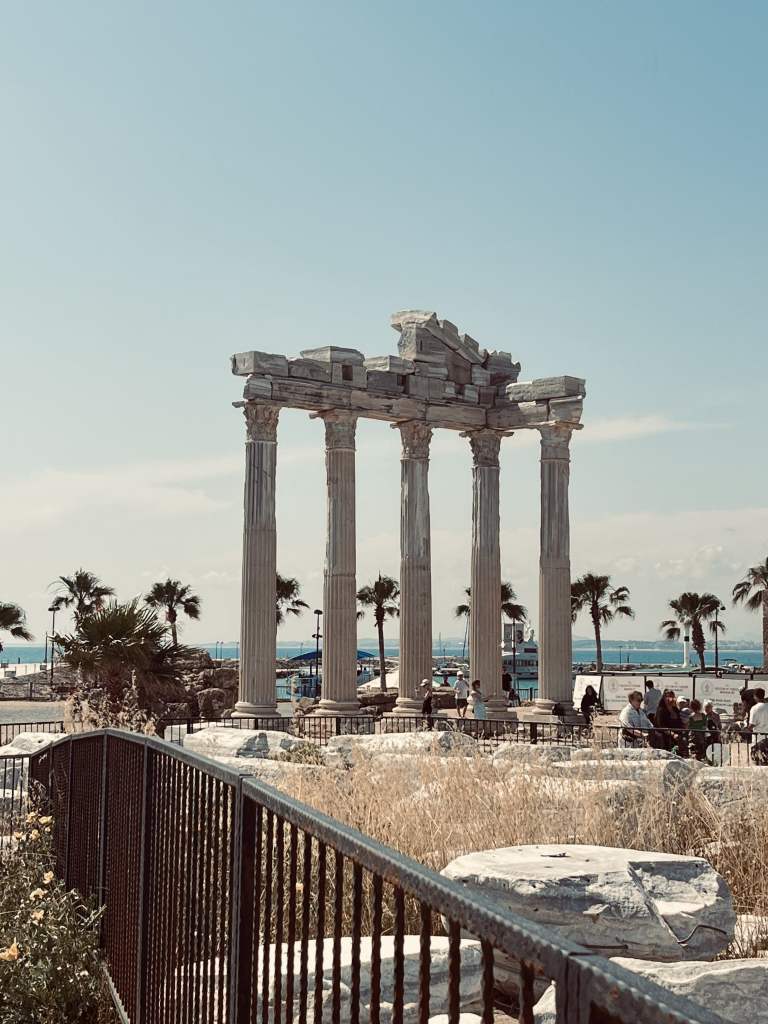 In the centre are the remains of the 2nd-century Antique Theater, which seated up to 15,000. The white marble columns of the Hellenistic Temple of Athena stand near the harbour. There are also other sites sprinkled throughout the city. It dates back to 7th Century BC. Some of the finds are at the Side Museum, a restored Roman bath complex.