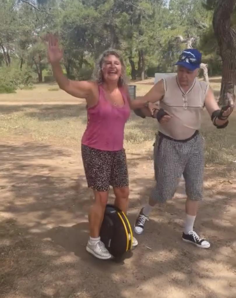 It was great going back, the German people and the puppies were still there an so was the Russian family we met before. The whole family had mono wheels and as you can see he allowed us to have a go and gave us a lesson. It definitely isn’t easy! Like anything the kids picked it up really fast and this man’s teenage daughter was able to do all sorts of tricks and stand on one leg! Neither of us dared to let go of the man’s arm!
