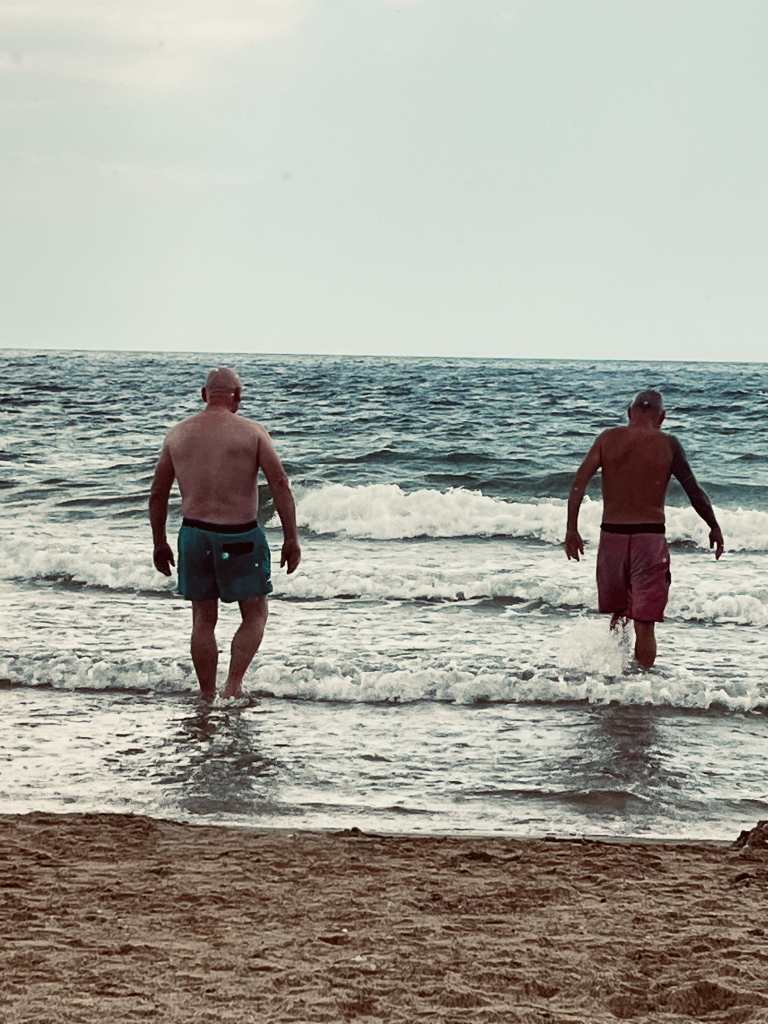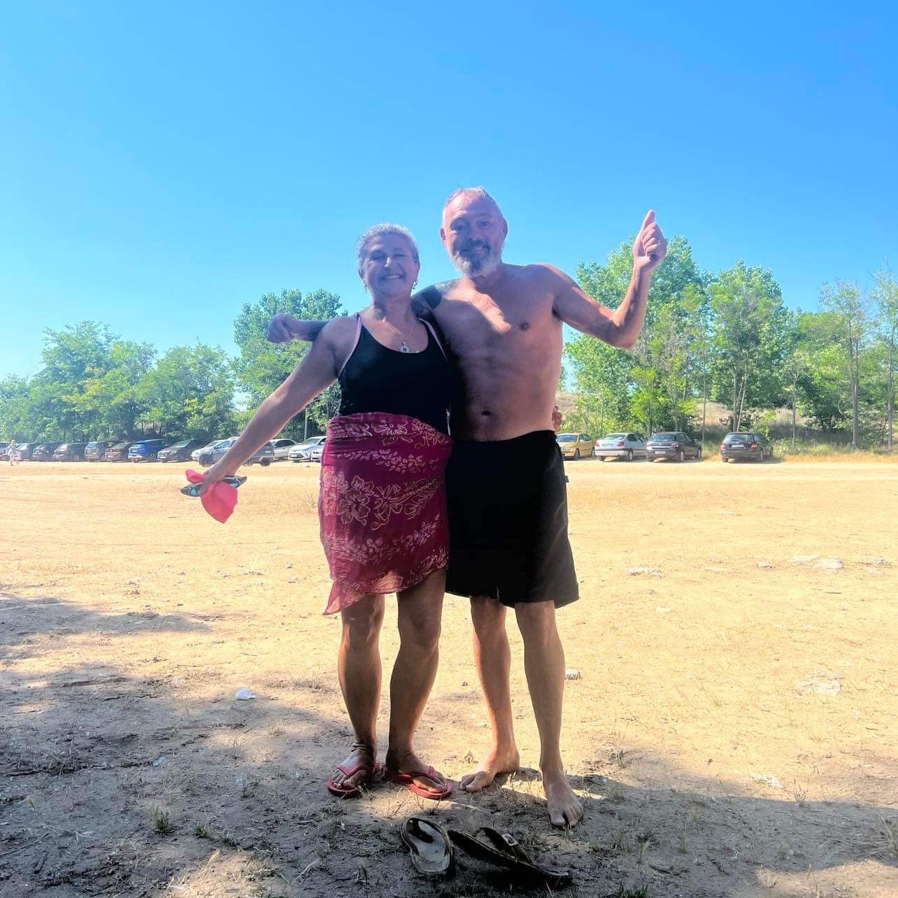 On the morning of my birthday I did of course have to go for a swim. Steve came with, here we are after the swim