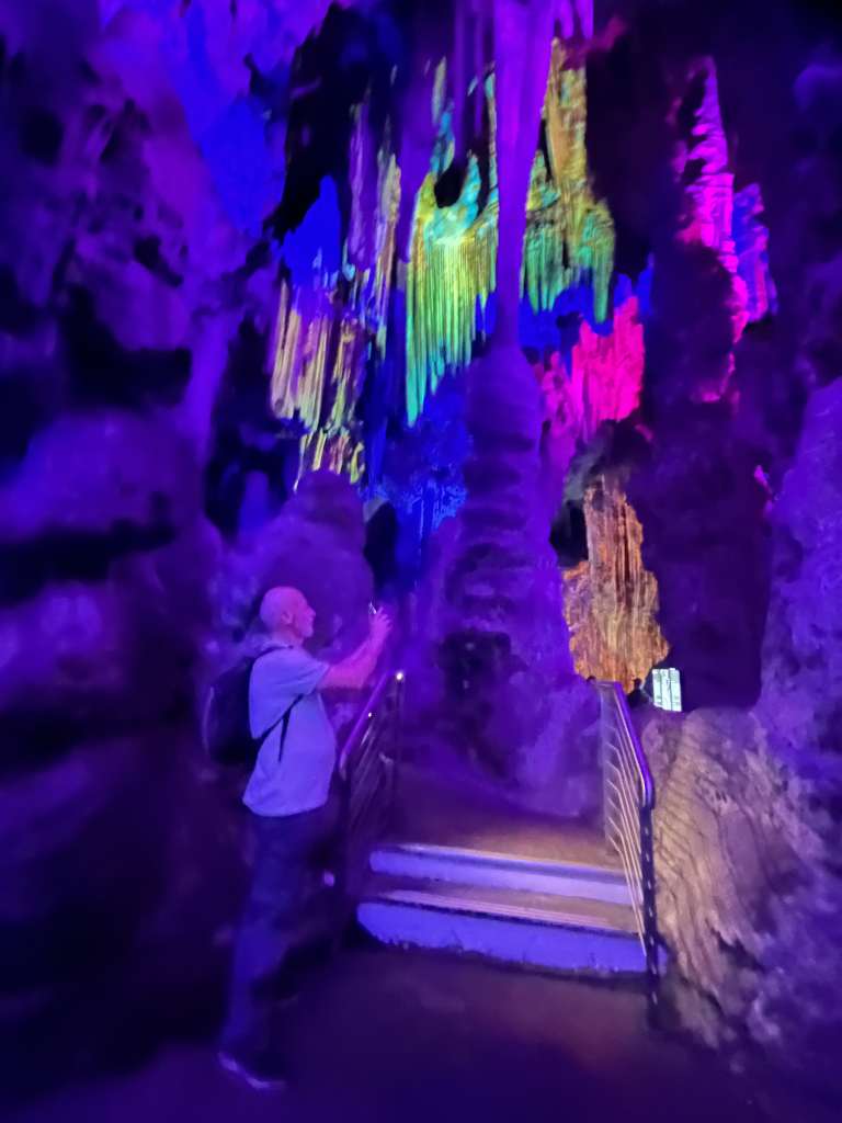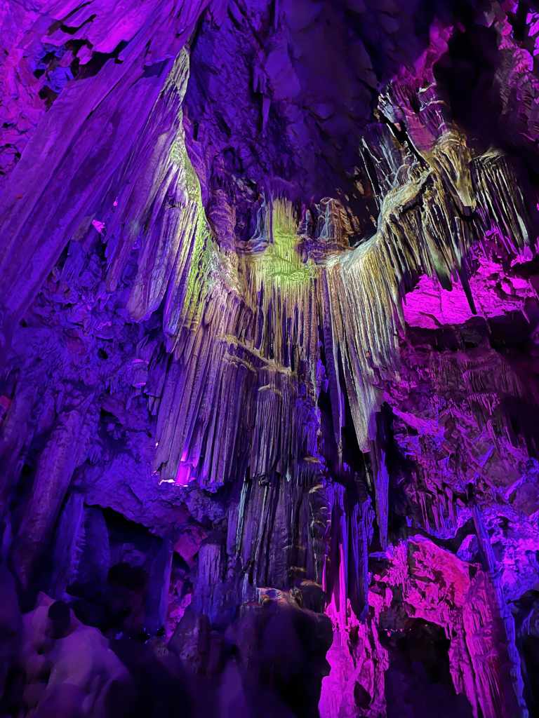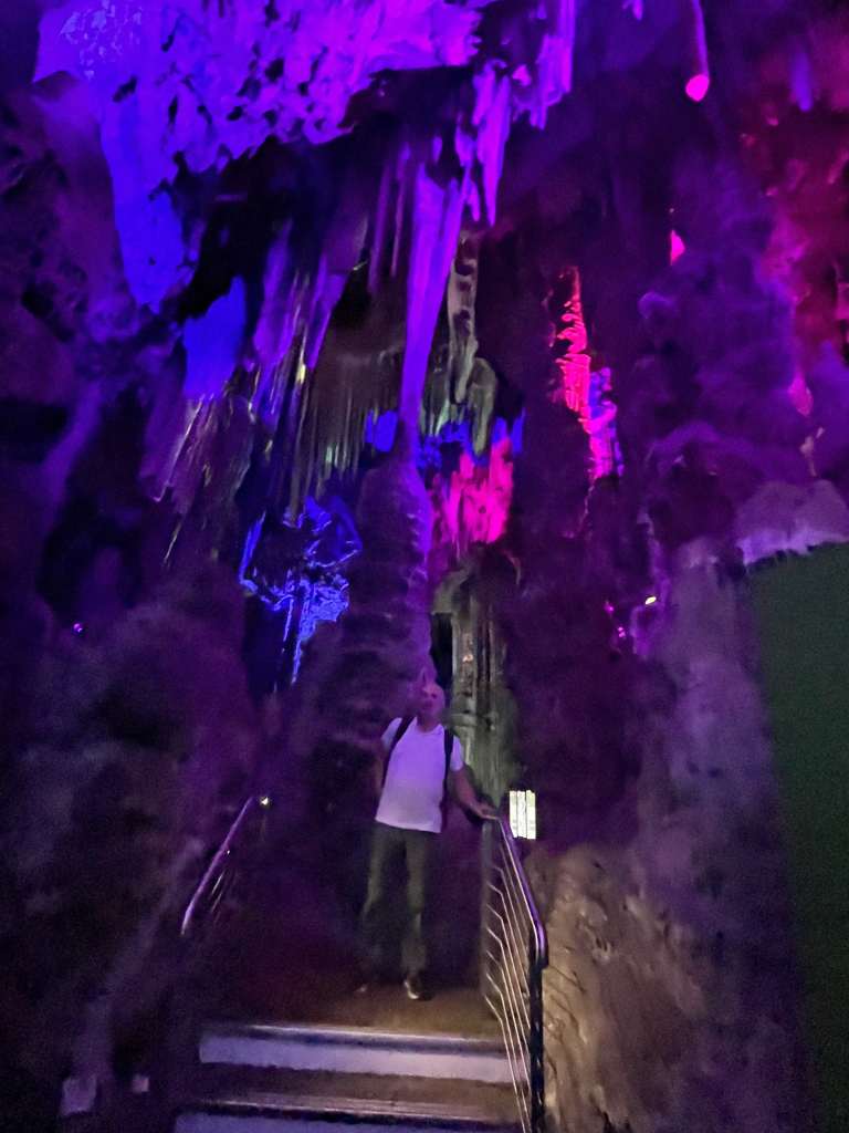 Walking inside feels like stepping into another world, although the lighting and the way it’s set up is all aimed at tourism. Towering stalactites and stalagmites are illuminated by colourful lights, creating an atmosphere that’s both dramatic and magical. The largest chamber, known as the Cathedral Cave, has been transformed into an auditorium where concerts and performances are held. With its natural acoustics and stunning setting, it’s a perfect venue. They even have a “light show ‘ where you can see what looks like an angel.